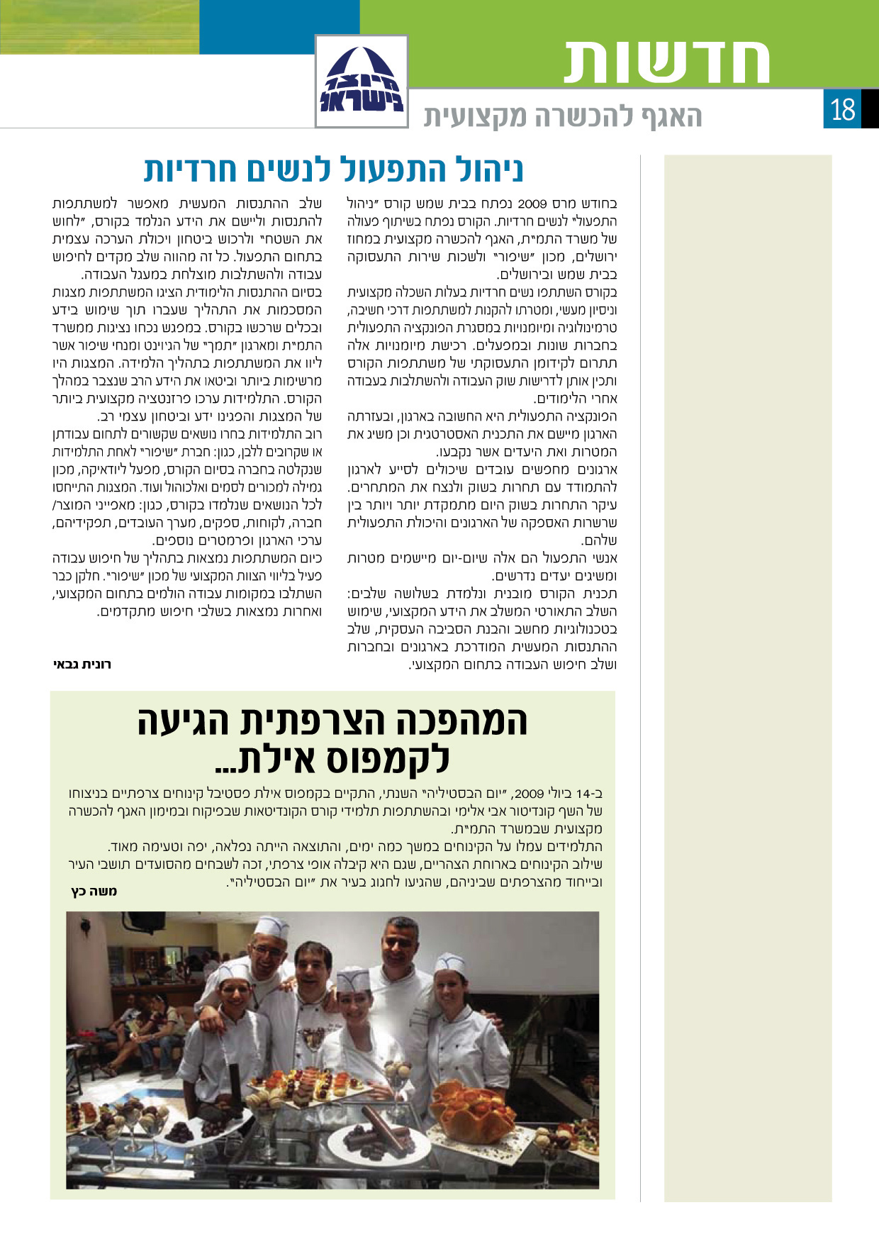 ניוזלטר האגף להכשרה מקצועית משרד התמת ספטמבר 2009