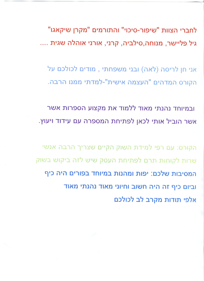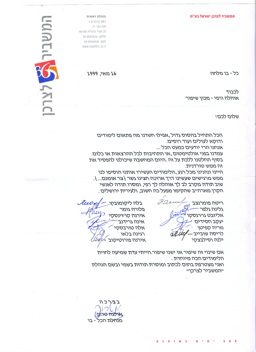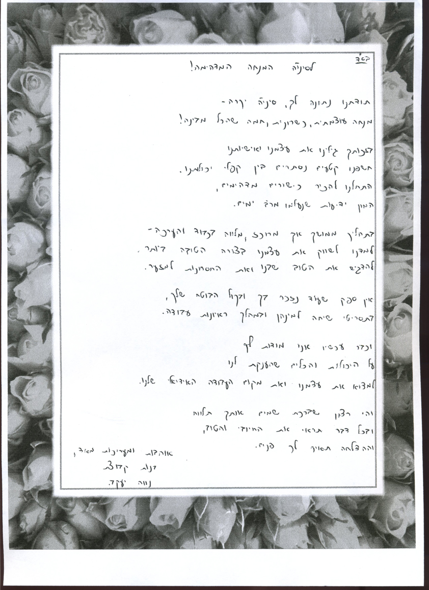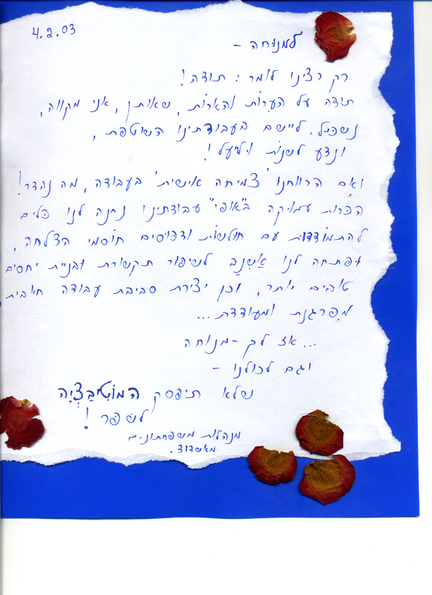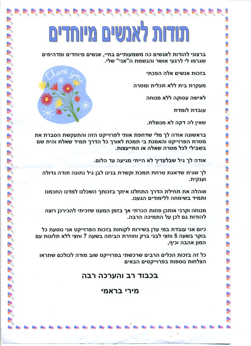פרופיל >> מכתבי תודה