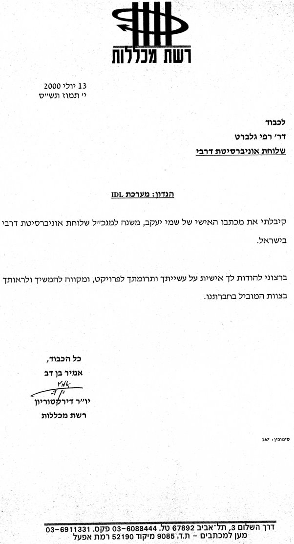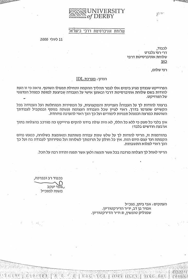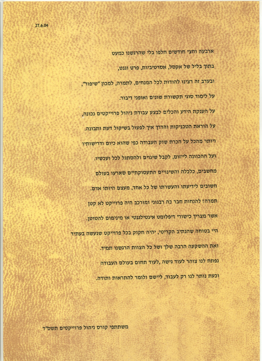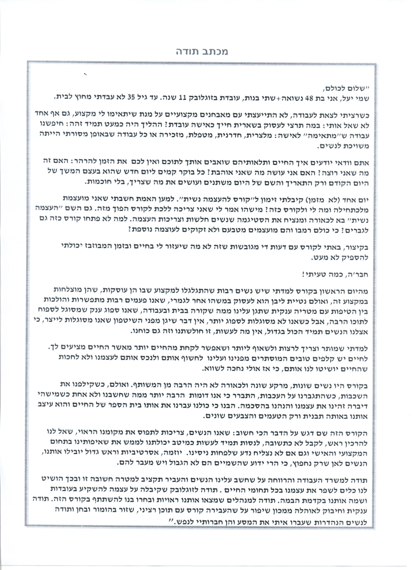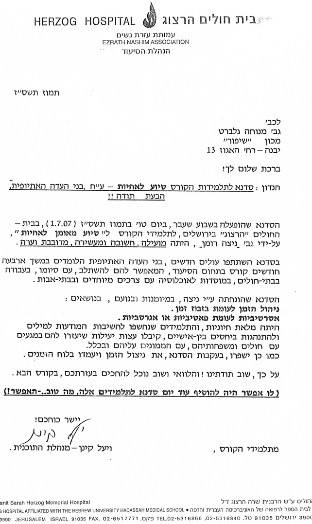 פרופיל >> מכתבי תודה