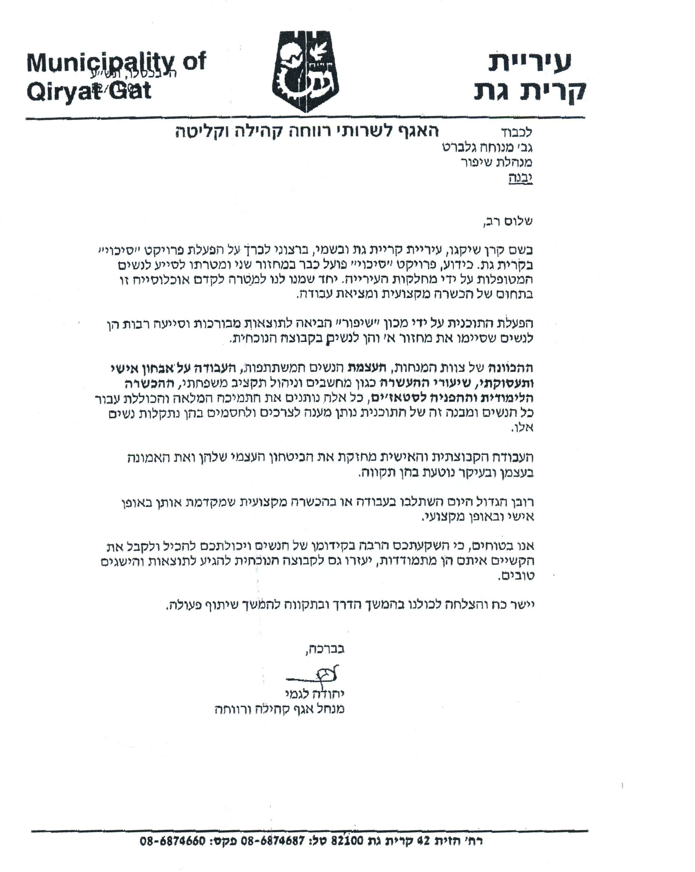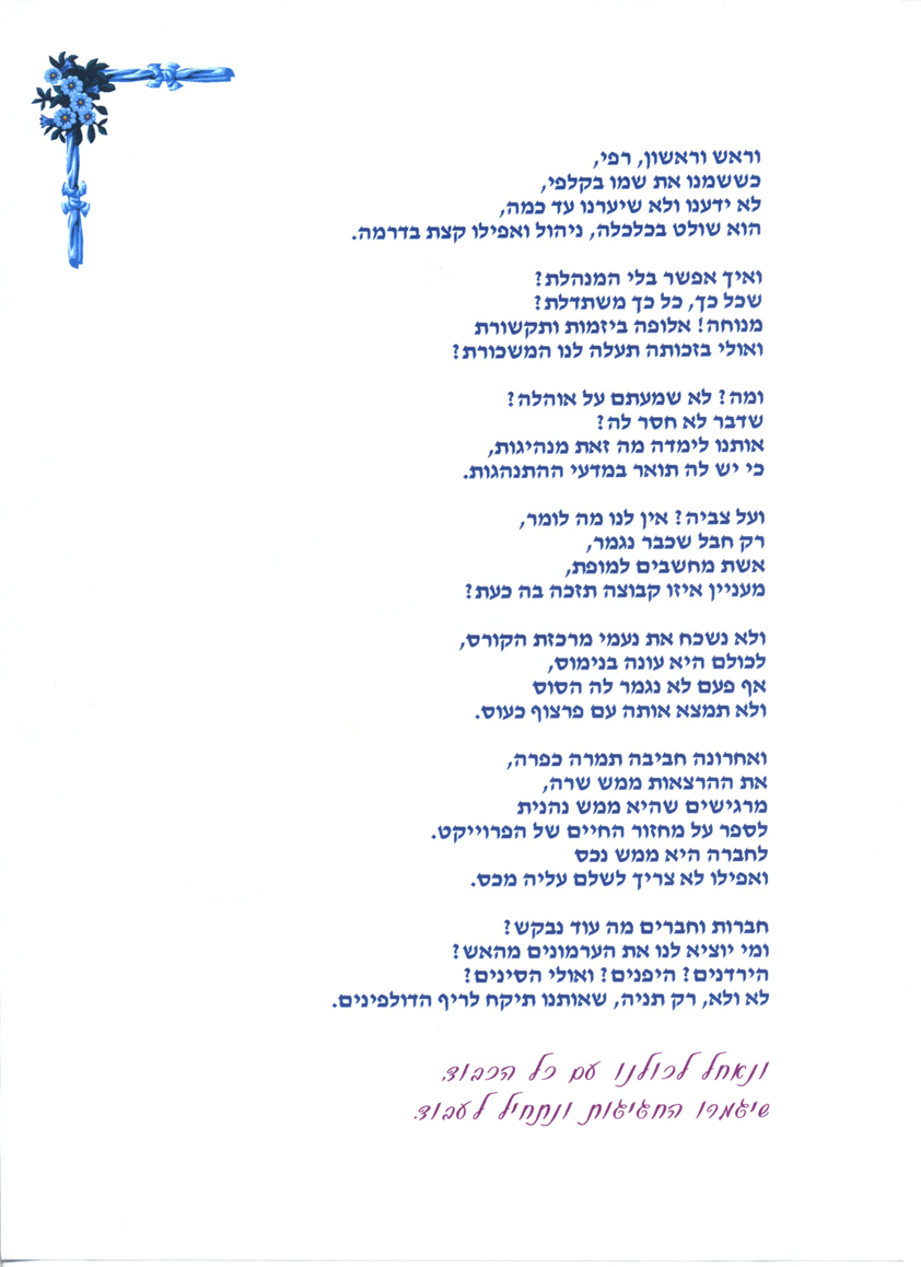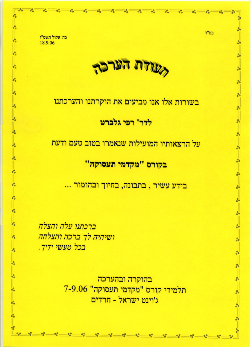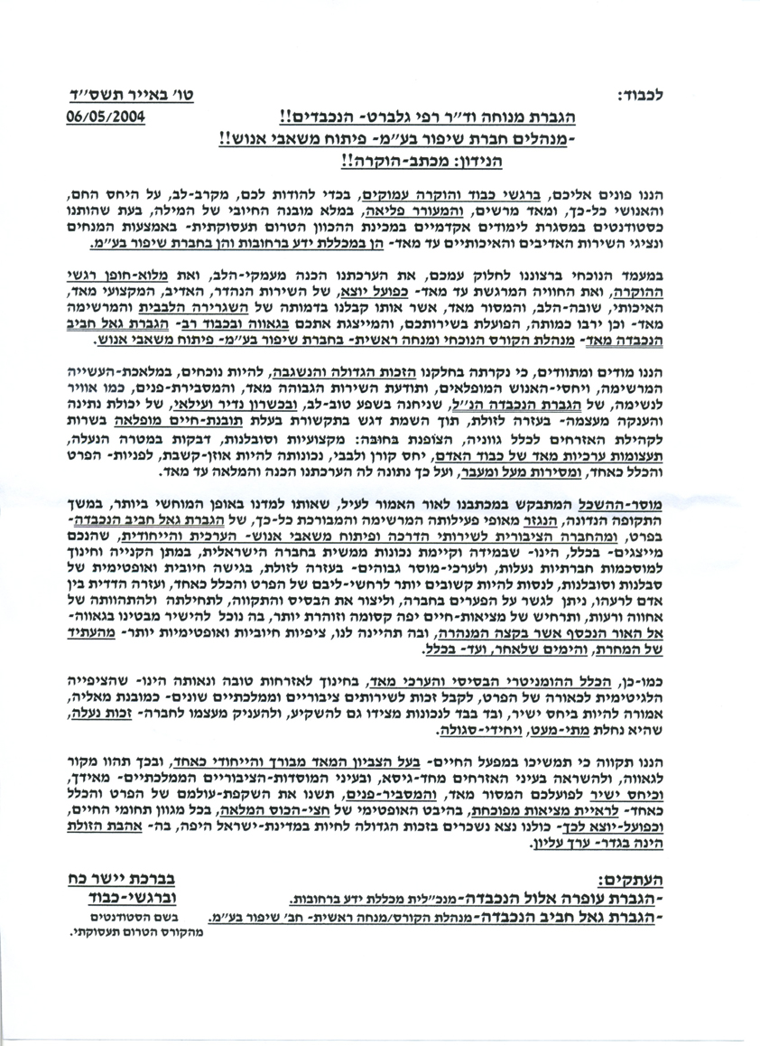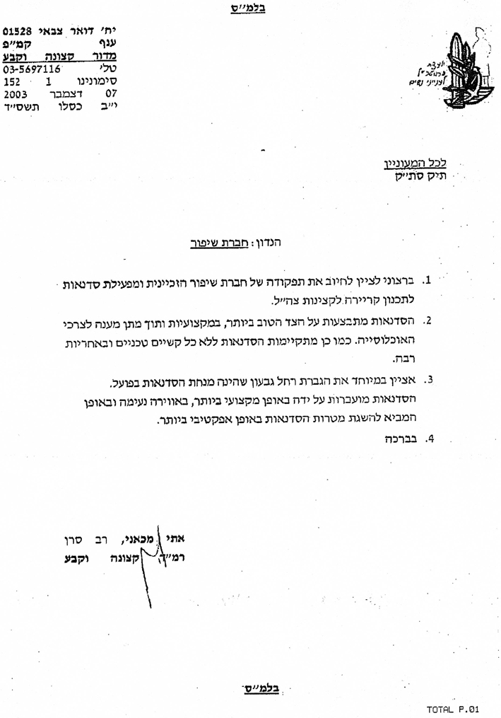 פרופיל >> מכתבי תודה