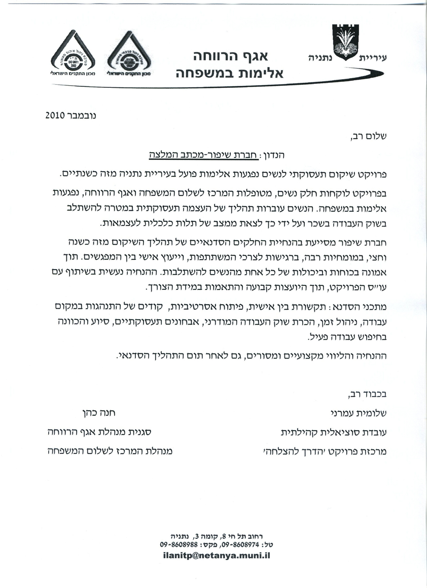 העצמה והשתלבות בעבודה במרכזים למניעת אלימות