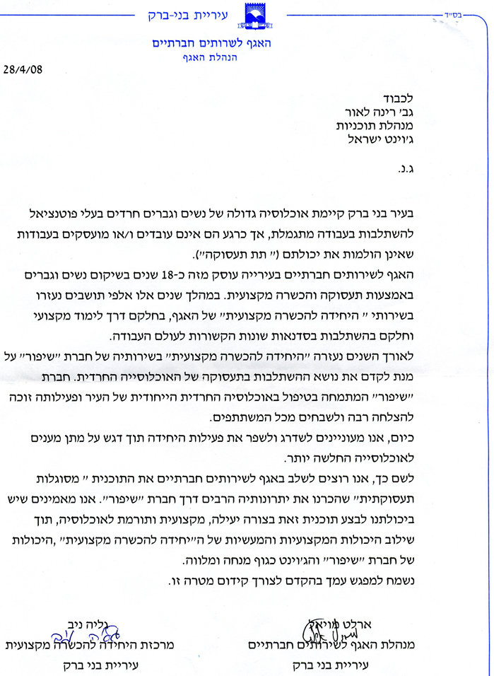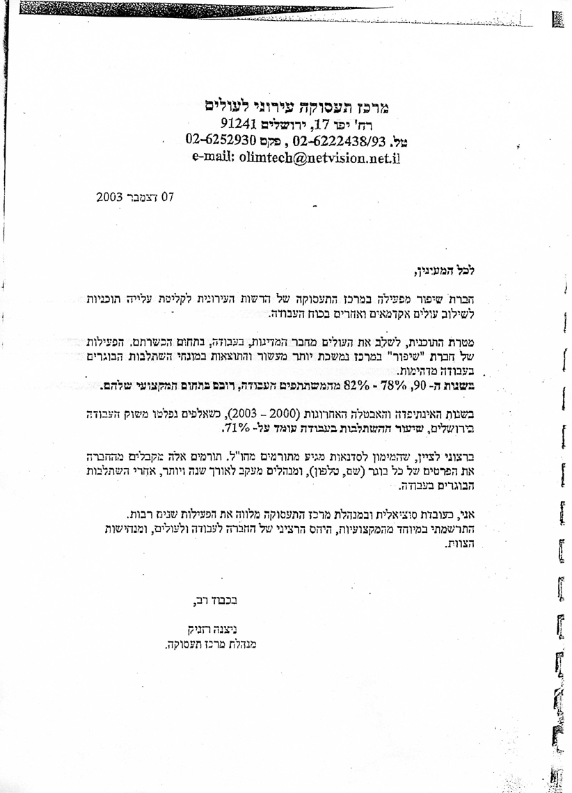 פרוייקט "סיכוי" - פיתוח מסוגלות תעסוקתית